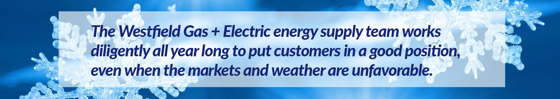 “The Westfield Gas + Electric energy supply team works diligently all year long to put customers in a good position, even when the market and weather are unfavorable,” notes General Manager Tom Flaherty, Sr. “We know that consumption and current bills are higher than expected given the cold weather.” To help you prepare, WG+E has been informing customers over the last few months with notices on our website and social media, as well as emails, bill notices, and newspaper articles.