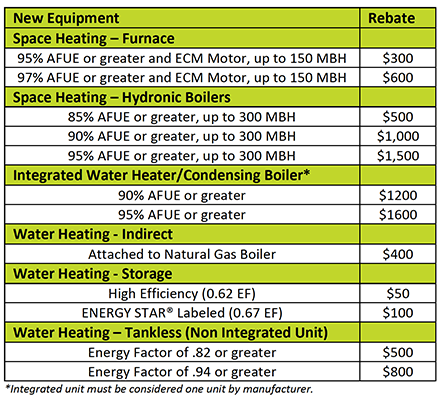 Westfield Gas + Electric’s Residential High Efficiency Heat and Hot Water rebates are offered to promote the installation of high-efficiency natural gas heating and water heating equipment. Rebates are available to customers that have had eligible systems installed by a licensed contractor within the past twelve (12) months.